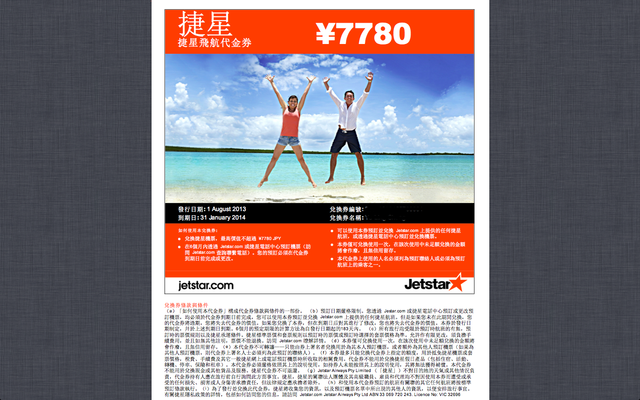 接到電話隔天就收到捷星寄來的Voucher